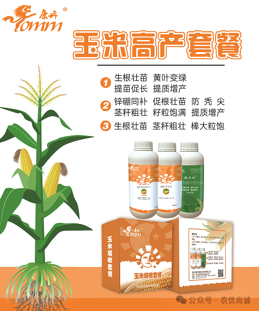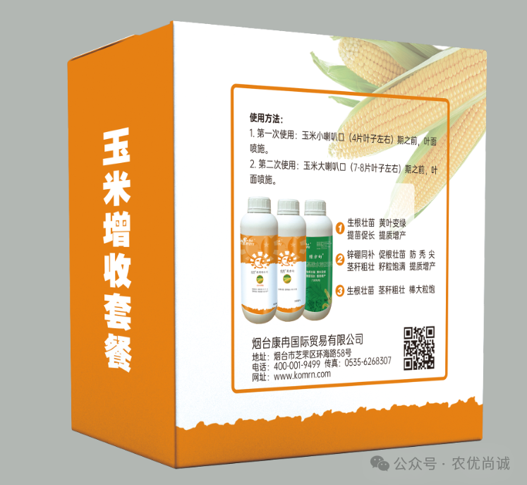 农优尚诚推出的玉米增收套餐(康冉速维果方向、康冉速维绿方向、康冉速维玉米提质增收剂)三种产品强强联合,生根壮苗、补锌硼、茎秆粗壮、防秃尖、棒大粒饱一次到位。